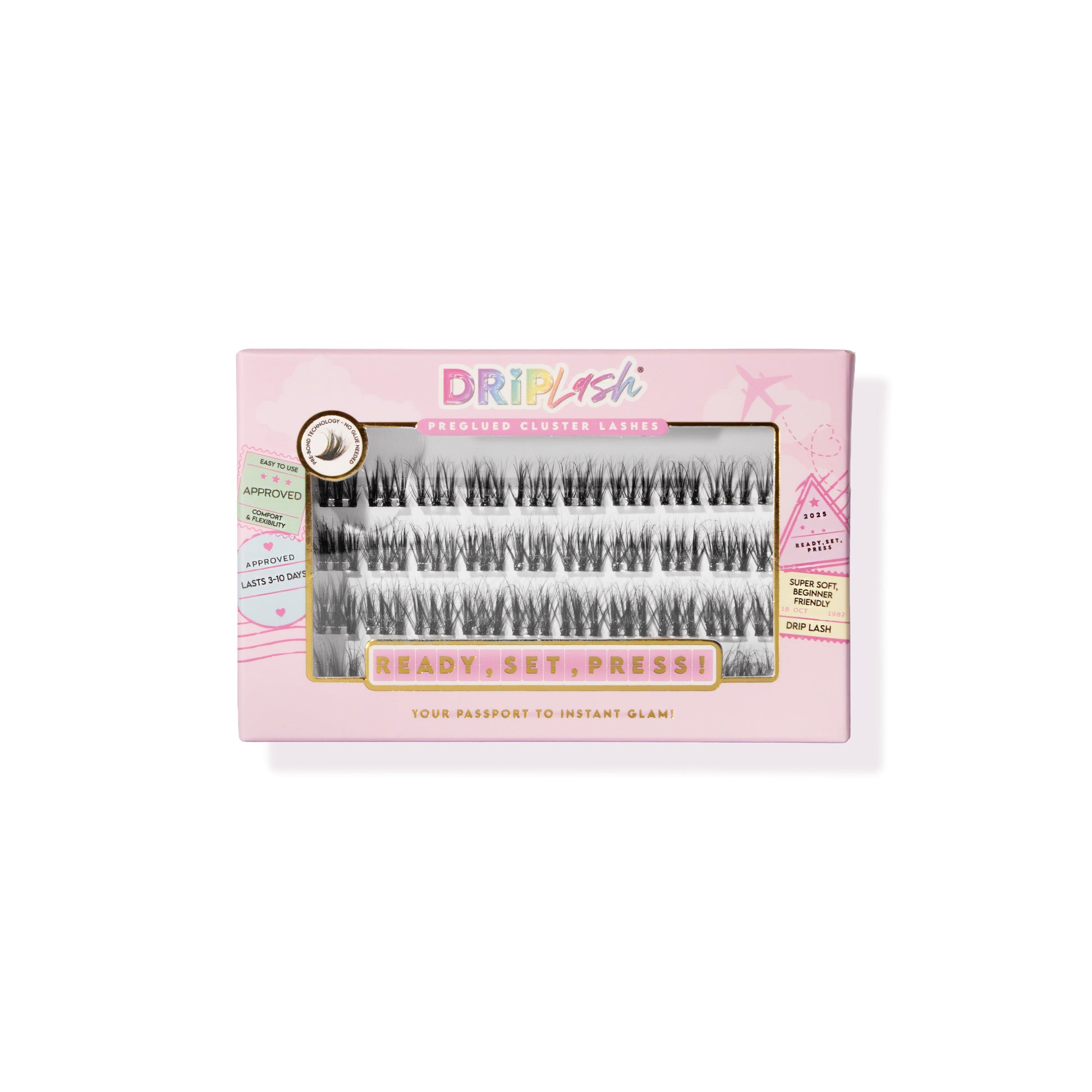 From the Ready, Set, Press range, Drip Lash™ Pre-Glued Cluster Lashes deliver customisable, salon-style lashes in seconds, no glue, no appointments, no skills needed.